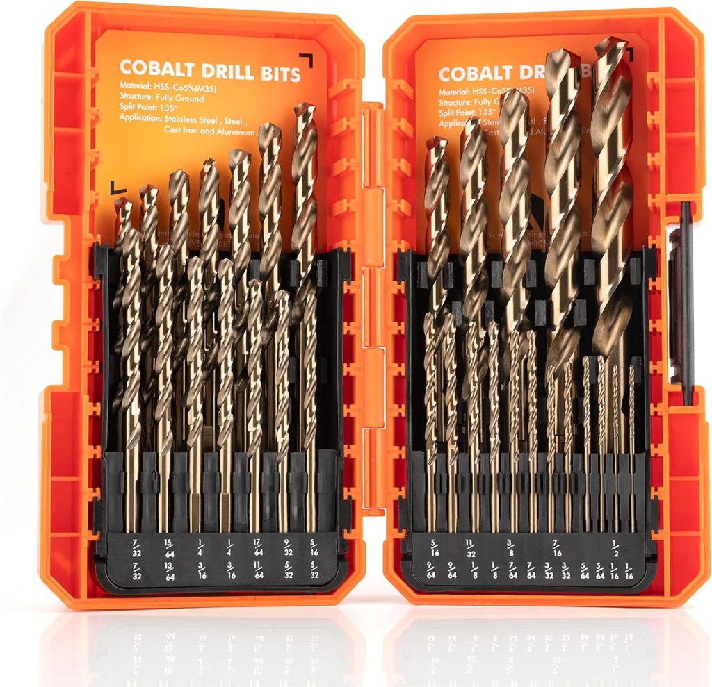 DeWalt is a trusted name in tools, and their industrial cobalt sets live up to the reputation. These bits are made from M35 cobalt steel, providing an excellent balance of hardness and durability for tackling tough materials.